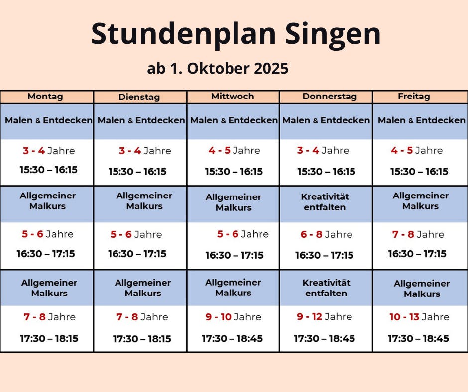 Unser Schulprogramm umfasst verschiedene Kurse für Kinder aller Altersgruppen